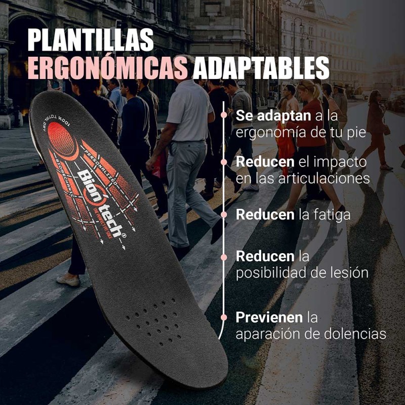Para complementar este rendimiento, las Biontech Pro 2.0 proporcionan la comodidad ergonómica necesaria en el día a día. Diseñadas para el uso prolongado, reducen la fatiga, mejoran la postura y aportan un soporte suave y estable en cada paso. Son perfectas para quienes alternan entrenamiento con jornadas largas de trabajo o actividad constante.