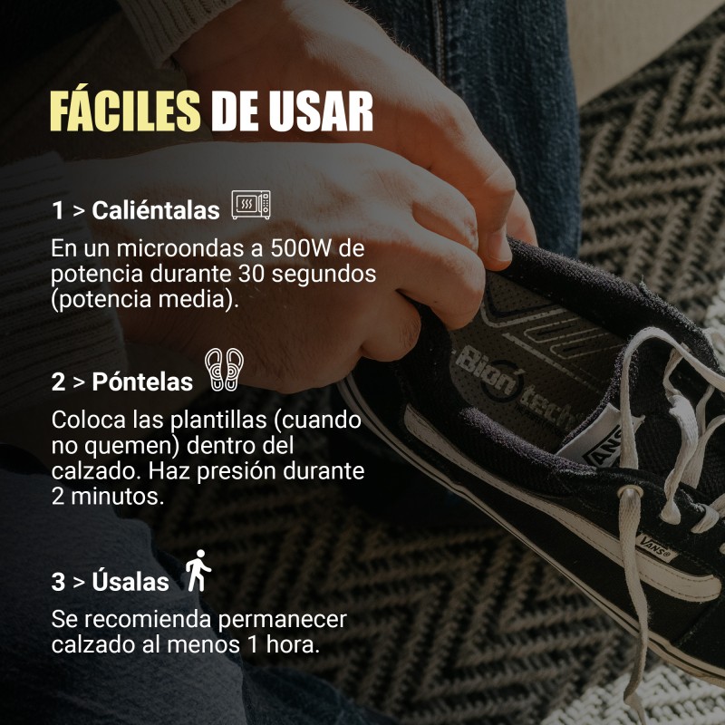 Colocar las plantillas dentro del calzado. Hacer presión de pie sobre ellas durante 2 minutos