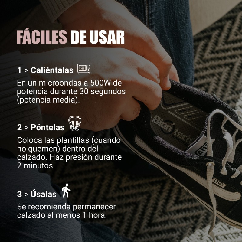 Colocar las plantillas dentro del calzado. Hacer presión de pie sobre ellas durante 2 minutos